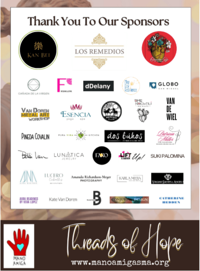 Our sponsors have beena vital part of Mano Amiga’s fundraising success for events, generously gifting silent auction items, financial contributions, and event volunteer support. Your donations have transformed our events into powerful opportunities to raise funds for empowering women entrepreneurs in our community. Thanks to your kindness, we’ve been able to provide microloans and resources that create lasting change. We are deeply grateful to our past sponsors for their generosity and for making each event impactful, inspiring, and meaningful. Together, we’re building brighter futures and stronger communities in San Miguel de Allende!
